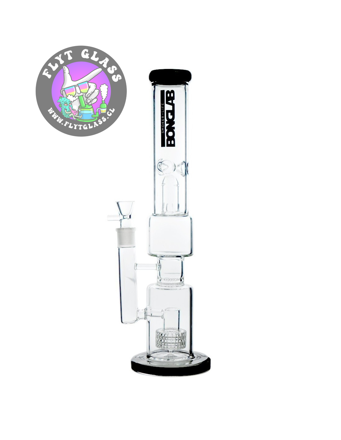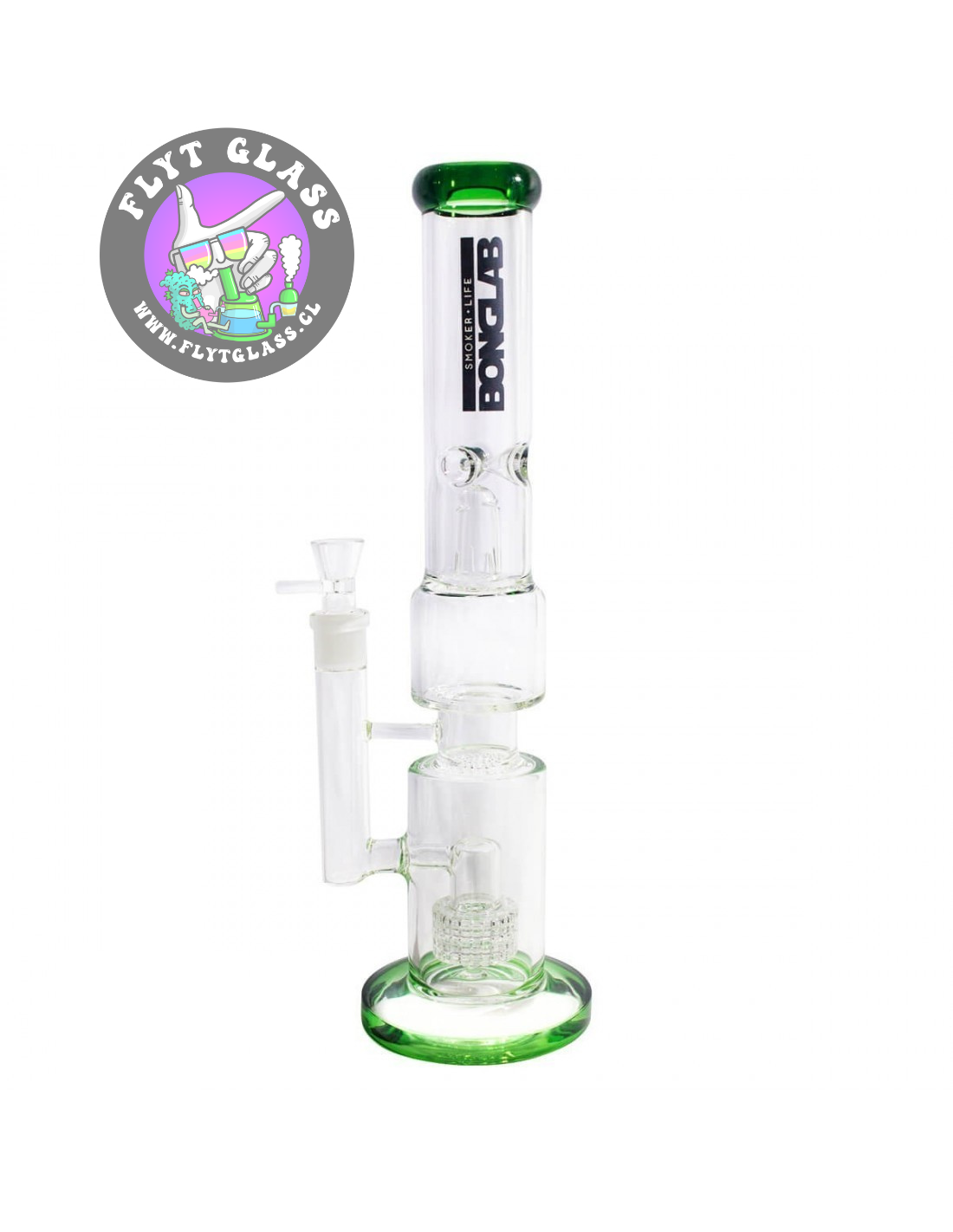 Bong de borosilicato (Pyrex), que posee percoladores Matrix y HoneyComb, logrando enfriar, filtrar y humectar el humo que generas. Además, este Bong posee un Splash Guard, pieza fundamental que impide que suba el agua y llegue a tus labios, evitando experiencias desagradables al momento de fumar.